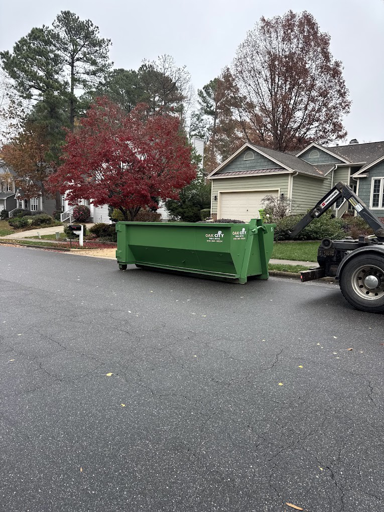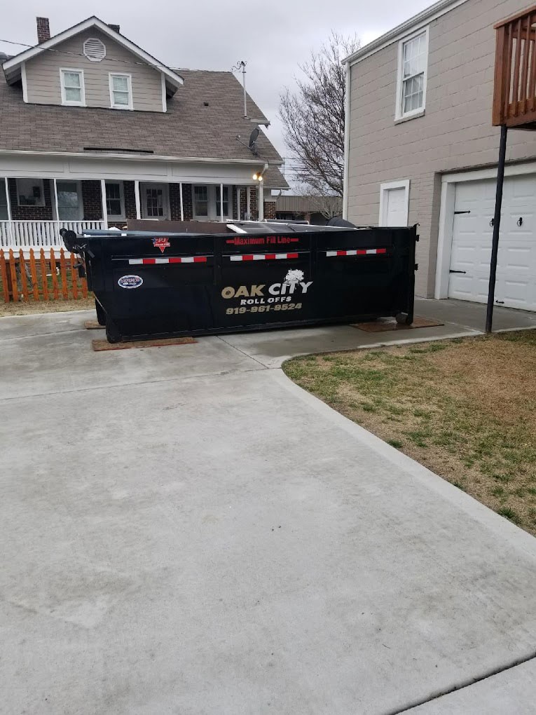 Oak City Roll Offs helps homeowners, contractors, and property managers across the greater Raleigh area clear space quickly without the stress or surface damage that often comes with dumpster rentals. Based in Wendell and serving the communities surrounding Raleigh’s eastern corridor and growing suburban neighborhoods, we specialize in driveway-safe dumpster placement using compact, maneuverable equipment designed to protect your concrete, asphalt, and landscaping. Whether you're remodeling a kitchen, cleaning out a garage before a move, or managing debris from a job site, our 15 yard and 20 yard roll-off containers are sized to keep your project moving without overcomplicating the process.We know your time and property matter, which is why we’ve built our service around fast delivery, simple flat-rate pricing, and direct communication with the people handling your rental from start to finish. No call centers or guesswork, just a straightforward way to keep your project clean, organized, and on track.Ready to clear the clutter and keep your project moving? Book a dumpster from Oak City Roll Offs online today and get it done the easy way.