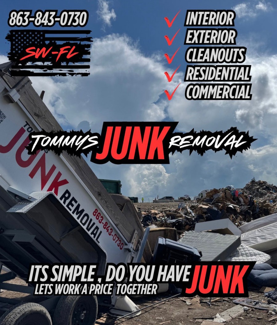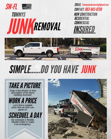 When clutter piles up or a property needs to be cleared fast, Tommy’s Junk Removal helps homeowners, landlords, and businesses reclaim their space without the stress. From old furniture and appliance removal to full property cleanouts, storm debris, and rental turnovers, we handle the heavy lifting so you don’t have to. Based in Moore Haven, we proudly serve the Florida Heartland and surrounding Lake Okeechobee communities with prompt, dependable service you can count on.As an owner-operated business, every job is handled with care, clear communication, and respect for your time and property. Whether you're cleaning out a garage, preparing a home for sale, or dealing with an unexpected mess, we make the process simple, efficient, and hassle-free from start to finish.Call or message Tommy’s Junk Removal today for a quick quote and get your space back—fast!